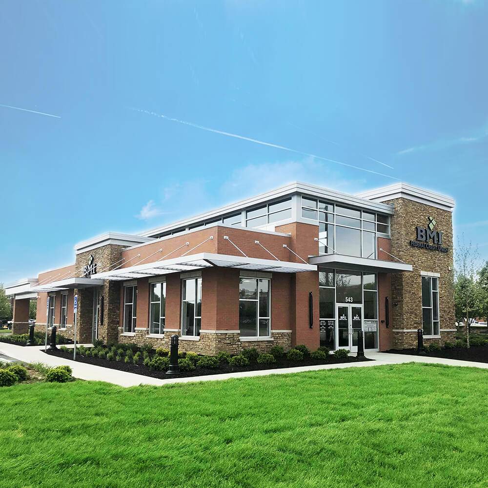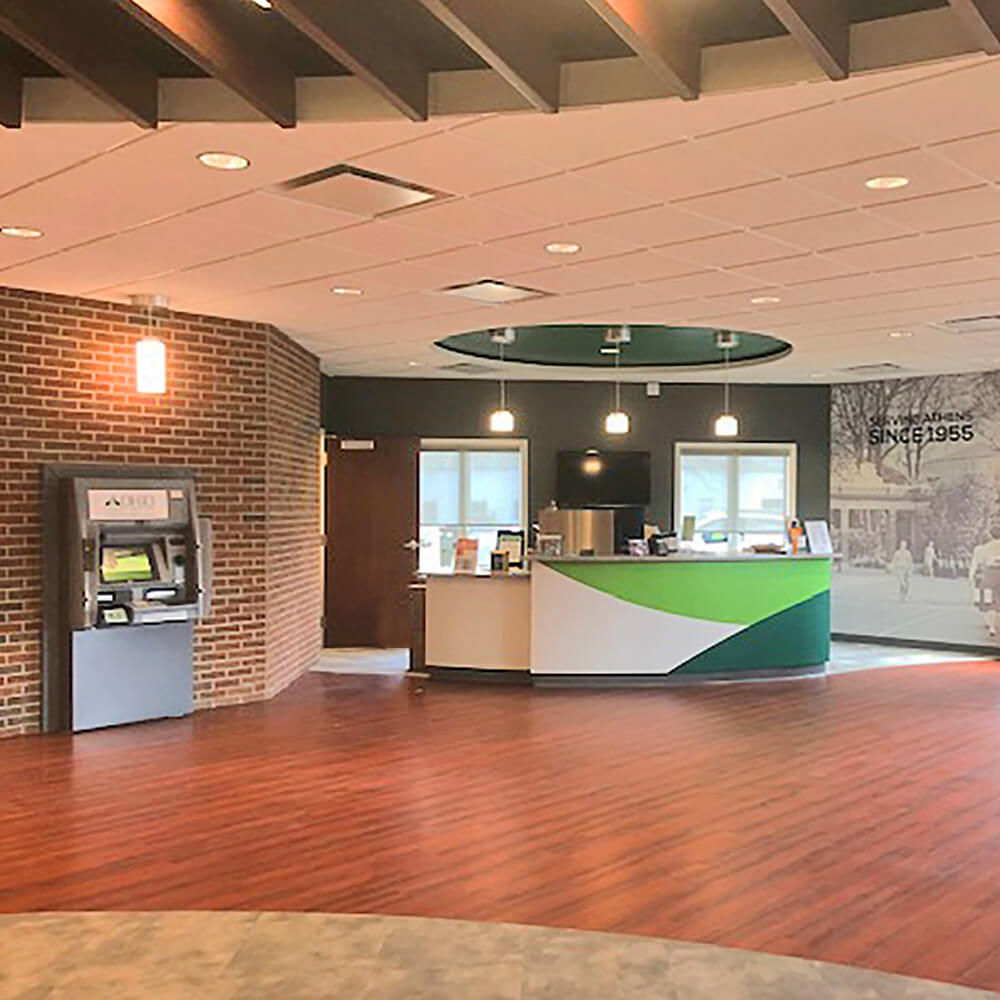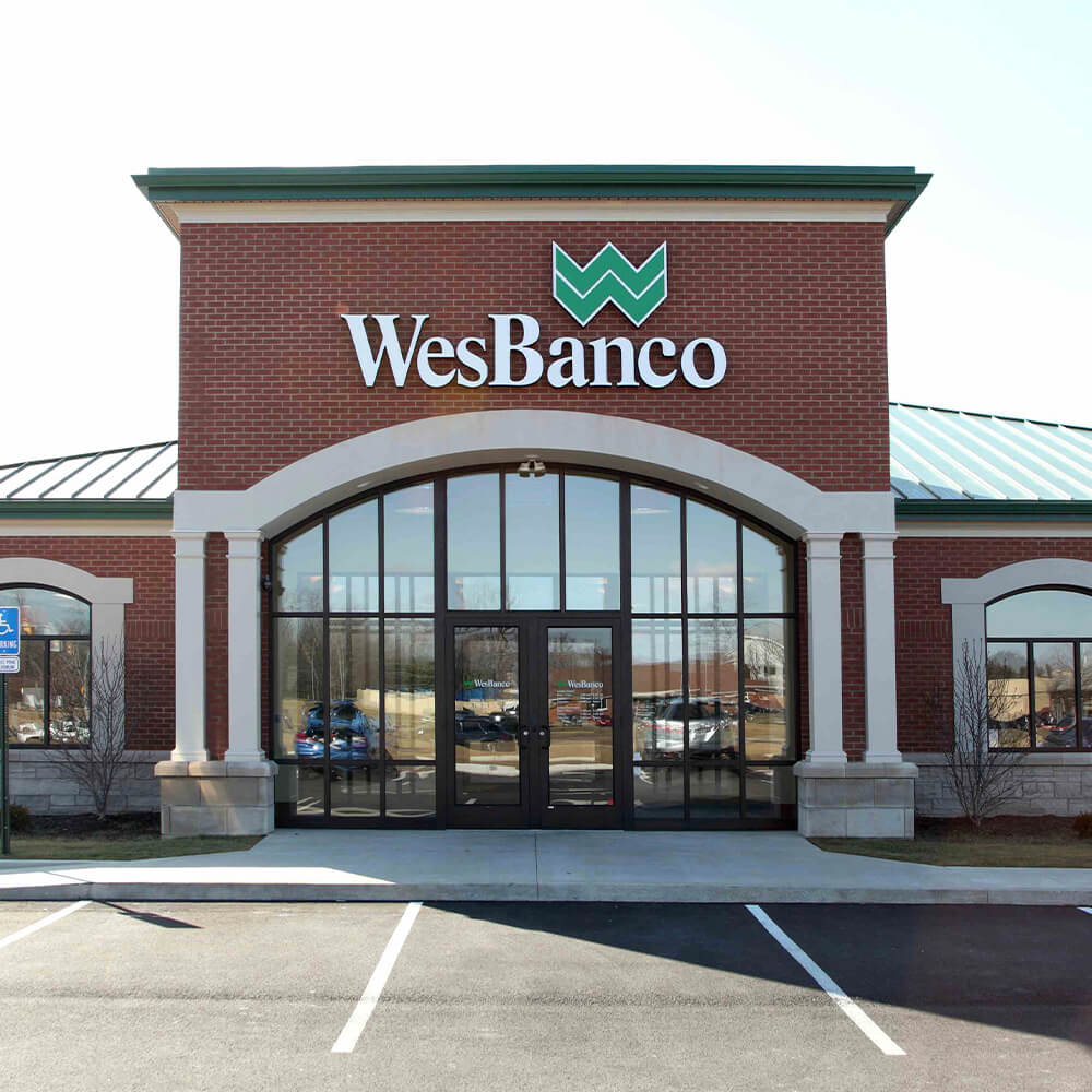 The new WesBanco Branch in Beavercreek, Ohio, features a modern accessible approach, drive-thru, ATM, on-brand exterior and interior, and state-of-the-art technology.
